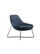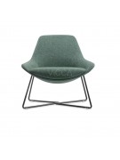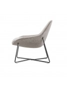 Poltrona Sara tipo lounge de estructura de madera con espuma inyectada, asiento y respaldo, tapizado con lana. Patas de acero pintado, tipo hilo trineo.