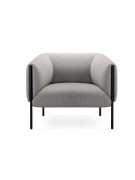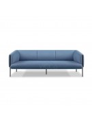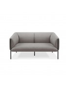 Sofa Alfa de espuma de alta densidad tapizado en tela. Soporte de marco de madera con resorte tipo S de 3,5mm. Estructura de acero de 1,5mm y patas de 2mm. Ribete en tono del tapiz al borde de la estructura de acero negro frontal. Disponible en 1, 2 y 3 cuerpos.